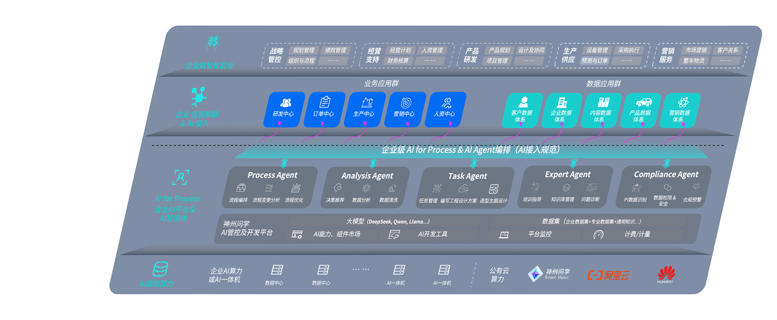 壹号娱乐问学智车解决方案是一套基于AI技术的汽车行业智能化系统,,,,覆盖从底层算力到顶层AI应用的全栈方案。。。。方案由算力层、、模型层和应用层组成:算力层,,,方案支持多种一体机配置,,,,具备云端灵活部署、、、多云适配以及动态优化计算资源的能力;模型层,,壹号娱乐问学平台版提供了企业级AI应用一站式构建与管理平台,,,,支持基于后训练强化技术的汽车企业专属模型的训练、、、、评测和运营;应用层,,,,壹号娱乐问学DeepSeek版提供包括超级员工、、智能招采、、、、智能营销、、智能客服、、、、AI for BI等一系列解决方案,,,可助力汽车行业实现数字化转型,,让管理更智能、、响应更敏捷。。。