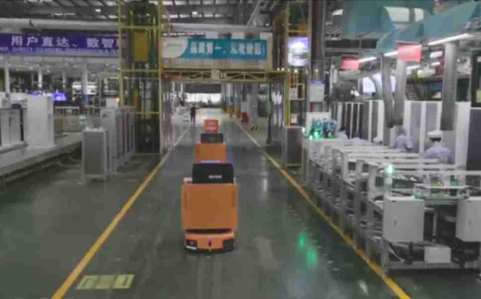 为车载冰箱物流配送打造的智能解决方案,,,包含产中物流通过潜伏举升AMR搬运至线边,,,,产后成品物流智能仓储,,,流程包含产中物流智能齐套入库,,,线边安灯叫料AMR智能配送至线边,,成品入库、、、出库,,通过无人堆高车机器人,,,,智能仓储管理替代人工作业管理,,,实现更高存储、、更高效率、、更具柔性化的解决方案。。。