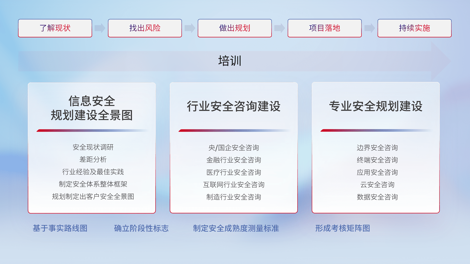 梳理客户信息安全现状调研、、差距分析结果,,,结合行业先进经验及最佳实践,,制订客户的信息安全管控体系总结架构,,,最终形成一个完整的客户信息安全规划与建设的全景图。。。